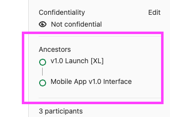 In an epic, you can view the ancestors as parents in the right sidebar under Ancestors.